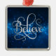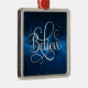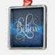 Dieses dramatische und elegante Ornament ist während der Weihnachtszeit schön, kann aber auch das ganze Jahr über zu sehen sein. Es enthält ein silbernes Skript, das "Glauben" gegen einen blauen Nachthimmel mit leuchtenden blauen Sternen sagt. Hübsch!