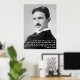 Nikola Tesla zitiert ein Poster - "Ich glaube nicht, dass es einen Nervenkitzel gibt, der durch das menschliche Herz gehen kann, so wie es der Erfinder fühlt, wenn er eine Art Gehirnentstehung sieht, die sich zum Erfolg entfaltet." Anfang der 1900er Foto Portrait des genialen Erfinders Nikola Tesla.