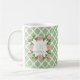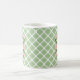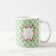Personifizieren Sie diese Chicnilgrün und -WEISS quatrefoil Muster-Tasse, die mit einem Blumenmonogramm der romantischen weichen rosa Rose verschönert wird, das Sie mit Ihrer Initiale und Namen personifizieren können. Wählen Sie von 3 Größen.