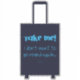 Ein lustiger Gepäckaufkleber mit einem dunkelblauen Waggonkoffer, und die Worte "Nimm mich, ich Woll nicht, wieder herumzufahren". So lustig, wenn man sieht, wie das rund und rund auf dem Gepäckkarussell läuft.
