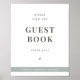Dieses bedruckbare Schild zeigt unser Gästebuchsignablett mit modernem minimalistischem Design und vollständig bearbeitbarem Text mit schlauer grüner Farbkombination. Ändern Sie einfach die Schriftart, die Schriftart- und Hintergrundfarbe, um sie Ihrem Veranstaltungsstil anzupassen.
