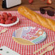 Nine ist eine Vibe Retro Sunshine Rainbow Daisy Pappteller