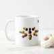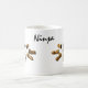 Eine braune Schachhalle, umgeben von sieben weißen gelblichen Pflastersteinen. Ninja Sieg über Feinde. Funny coffee Tasse. Zwei Bilder auf der äußeren und inneren Seite. Sie können die Bilder und den Text Ninja ändern oder löschen.