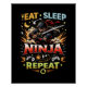 Ein wilder Cartoon-Ninja schneidet durch Explosionen unter dem Mantra der unerbittlichen Routine eines Spielers.