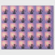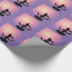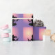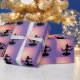 Trendy und erfrischende Silhouette einer Frau, die auf einem lila bis gelben Hintergrund meditiert.