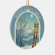 Ornament from a wonderful skiing holiday in the beautiful mountains of Niseko United Japan Hokkaido. This Ornament features an arch with a stunning blue-grey mountain landscape and retro ski boards in an orange tribal pattern in the foreground. The rest is in a lovely light blue tone with the location lettering in a modern font. The design is a lovely combination of retro and modern, and I hope you enjoy it!