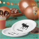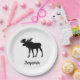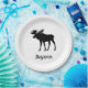 Ein schöner Elch Papierplatte, dieses Design hat einen weißen Hintergrund mit Elch Grafik, den Sie unten in schwarz kursiv geschrieben.