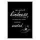 This elegant black-and-white poster features the timeless quote “No act of kindness, no matter how small, is ever wasted,” beautifully styled with flowing typography and a delicate hand-and-heart illustration.