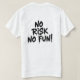 The image displays the phrase "NO RISK NO FUN!" in a black graffiti-style font, complete with drips and a spray-paint effect. The text is a motivational quote that is often used for various commercial products.