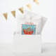 Dieses schöne Bild eines Stifts und Aquarellbilders von Helen McCartney Designs zeigt eine Gruppe süßer Tiere, die an Bord der Noah's Ark zusammengepeitscht werden.