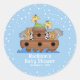 Einzigartiger Aufkleber auf der Rückseite von Baby Shower Einladungen. Hier findet ihr Noah's Ark mit einem blauen Hintergrund für Jungs.Siehe Matching Baby Shower Einladungen.