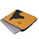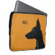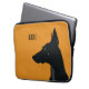 Ein minimalistisches Notebook-Ärmeldesign für Hundehalter oder Liebhaber, das auf gelbem Hintergrund angebracht wurde. Das Design führt eine Silhouette eines schwarzen Doberman mit dem Standard anpassbaren Dank.