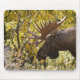 Er ist mit dem Bild eines Bullenmammes (Alzheiser) dekoriert, als er einem Kuhmaus durch die Herbstpracht des Chugach Staat Parks von Alaska folgte. von Ted Raynor