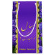 Edelsteine, elegante Persische Neujahrsmalerei: Lila-goldene Grenze auf einem Hyazinthen-Fower-Feld mit Neujahrswünsche in Englisch und Farsi.
