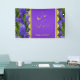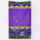 Noble, elegante Persische Neujahrsausgabe: Lila-goldene Grenze auf einem hyacinth Blume Feld mit Neujahrswünsche in Englisch und Farsi.