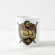 Diese kühne, maskuline Tasse weist ein auffallendes Emblem aus Kraft und Ehre auf - ein erbitterter Löwenkopf auf einem klassischen Schild, flankiert von gekreuzten Schwertern und gekrönt von einem Lorbeerkranz. In tiefen Farbtönen mit eleganten Goldakzenten gestaltet, ist es die perfekte Tasse für diejenigen, die Mut, Adel und zeitlosen Stil schätzen