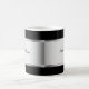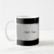 Monogrammkaffee-Tassen mit noblem Entwurf, der einen silbernen schauenden Hintergrund- und Wortraum Sie umfaßt, können einen Namen oder Initialen addieren. Entworfen für Männer oder Frauen, stellt dieser moderne Entwurf dieses eine Spaßschale für Kaffee, Tee oder Ihr Lieblingsgetränk her.