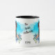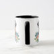 Das Merkmal dieser Tasse ist ein wunderschönes Aquarellbild eines schwarz-bräunlichen Rottweilers, der aus einem Blumenstrauß mit pfirsichfarbenen Rose entsteht. Das Bild wird auf einem hellblauen Hintergrund des Spritzers platziert und zweimal auf der Tasse gedruckt. Zwischen den beiden Bildern befindet sich Ihr benutzerdefinierter Text und Ihr Monogramm oder Name in schwarz. Sagen Sie, was Sie wollen, oder entfernen Sie den Text ganz, wenn Sie möchten.
