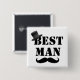 Trauzeugeknopf mit Spitzenhut- und Schnurrbartmotiv und Schablonebeschriftung. Groß für Hirschnächte und Hochzeits-Empfänge, wenn die Formalitäten sind und es ist Zeit zum Party übermäßig. (sehen Sie zusammenpassende T - Shirts und Knöpfe für Bräutigam und Trauzeugen), klicken Sie besonders anfertigen, wenn Sie Entwurfsgegenstände und -text addieren oder entfernen möchten.