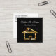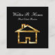 Ist hier eine einzigartige wirkliche Anwesenvermittler-Geschäftskartenschablone auf dem quadratischen diesem Formatkarten-Kartenvorrat Sets Sie auseinander. Entworfen mit einem schwarzen Hintergrund und einem Gold, die Haussymbol schauen, das einen hochwertigen Entwurf macht und Ihren Namen auf der Front und Ihren Kontakt auf der Rückseite kennzeichnet.