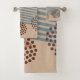 Dieses Handtuchhandtuch-Set ist in einem modernen abstrakten Design aus einer blauen Linie, einem bräunlichen Dreieck und einem braunen Kreis aus Punkten auf einem Feld aus dunklen Auberginen und Creme gehalten. Wenn Sie das gleiche Design mit verschiedenen Farben gewollt haben, schreiben Sie mir.