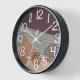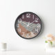 Diese Wanduhr hat ein zeitgenössisches abstraktes Design einer blauen Linie, ein bräunliches Dreieck und einen braunen Kreis aus Punkten auf einem Feld aus dunklen Auberginen und Sahne. Wenn Sie das gleiche Design mit verschiedenen Farben gewollt haben, schreiben Sie mir.