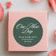Vorstellung unseres "One More Day Probe Dinner Emerald Green Fevor Classic Round Sticker". Diese exquisiten Aufkleber fügen Ihrem Probe-Dinner eine Touch von Eleganz hinzu und zeichnen sich durch ein ausgeprägtes smaragdgrünes Design aus. Perfekt für die Abdichtung von Einladungen, die Verzierung von Geschenktaschen oder die individuelle Gestaltung, jeder Aufkleber feiert die Vorfreude auf Ihren Hochzeitstag. Die auffallende Farbe und die Botschaft "One More Day" schaffen eine unvergessliche und stilvolle Ergänzung zu Ihren Hochzeitsfeiern, die einen eleganten und lebendigen Ton für Ihre besondere Veranstaltung bilden.