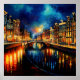 Nocturnal Reverie: Amsterdam's Moonlit Canals Poster