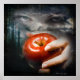 Nocturne ist ein dunkler Wald, verführerische Augen und ein hellroter Apfel, der in der Hand einer Frau gehalten wird.