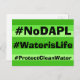 #NoDAPL, #WaterisLife und #ProtectCleanWater auf einem Hintergrund verschiedener Grüntöne geschrieben. #NoDAPL repräsentiert die Bewegung im Gegensatz zum Bau der Dakota Access Pipeline. Viele Rohrleitungen laufen aus, was zu einer Verunreinigung der Wasserversorgung und zu einer Schädigung des gesamten Lebens führt. Wir müssen unbedingt sauberes Wasser schützen. #ProtectCleanWater