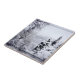 Ein Foto, das nur einen Blick auf den Bergsee durch schneebedeckte Tannenbäume zeigt. Dieses Landschaftsbild wird digital so bearbeitet, dass es wie eine Wasserfarbe aussieht. Der Nojiri-See ist ein Gletschersee in den japanischen Alpen. Es ist ein beliebter Ferienort im Sommer und im Winter, und die Winter-Olympia 1998 fanden in Nagano und den umliegenden Skipisten statt. Obwohl das Klima gemäßigt ist und der See selten überfriert, sind die Berge im Winter meist mit mehreren Füßen Schnee bedeckt.