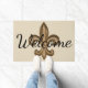 Hübsches Willkommen in der Skriptfußmatte mit einem großen GoldLiliensymbol.