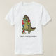 Ein zeichn eines lustigen Cartoon-Eidechsenmonsters, der unschuldige Gartenzwerge mit den Worten "nom nom gnome" isst