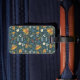 Make your luggage easy to spot with this distinctive floral luggage tag. Featuring the warm and inviting "Nomad's Garden" design by Mosswood Meadow, it displays large retro coneflowers and daisies on a rich teal background. This durable tag is a stylish and practical way to personalize your bags, ensuring they stand out on the baggage carousel while adding a touch of folk-art charm to your travels.