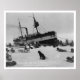 Ein klassisches Foto aus der Alaskan Dokumentation von Frank G. Carpenter. Dieser Gedenkplakat zeigt einen Blick auf Passagiere und Hundeteams, die 1914 in Nome, Alaska, den S.S. Corwin treffen.