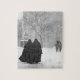 Dieses fantastische Rätsel zeigt das Schwarz-Weiß-Foto zweier Nonnen, die auf dem Gelände der Columbia University in New York City zusammen spazieren, während es schneit, etwa 1946, Dieses Werk des bekannten New Yorker Fotografen Dr. Irving Stein.