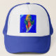 eine Nonne in grüner Hoodie und roter Gewohnheit surft eine blaue Welle