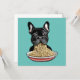 Hübscher, französischer Bulldogge, der Nudeln isst.