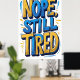 Ein sarkastisches handgezeichnet Typografie-Poster mit der Phrase "Nope, Still Tired" in ausdrucksstarker Schrift. Ideal für Schlafzimmer, Studentenwohnheime oder Büroräume und ein lustiges Geschenk für alle, die Spaß und interessante Zitate Lieben.