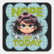 Ein Cartoon mit wütendem Ausdruck und fest gefesselten Fäusten ist illustriert mit den Worten "NOPE, NOT HEUTE" auf einem karierten Hintergrund. Der Charakter trägt ein Bündchen mit Bogen und hat dunkle Haare, die zurück fließen.