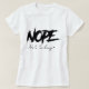 A bold black-and-white text design featuring the phrase “Nope, not today,” conveying a humorous and sassy attitude.