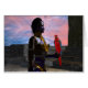 Schwarz tätoted Schönheit mit eleganten goldenen Schmuck mit ihrem farbenfrohen roten Papagei, unter dem rosa kosmischen Himmel mit blauen Planeten.Künstlerische Animation Rahmen aus Hyperion World 3d Animation sci-fi Spielfilm .