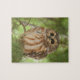 Nord Säge-whet Eule Aegolius acadicus L 7" Spannweite 16" diese kleine Eule wird gesehen selten, wie sie seinen Tag verbringt, der unter Niederlassungen in den Tannenbäumen verstaut wird. Ein ausschließlich noctural Vogel taucht sie an der Dämmerung auf, um für kleine Säugetiere zu jagen. Wie viele kleinen gebürtigen Eulen kämpfen sie, um mit Lebensraumverlust fertig zu werden, der sie anfälliger gegen die Ankunft der abgehaltenen Eule durch die meisten ihrer Westernstrecke verlässt