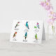 Hübsche Grußkarte mit Ruby-throated, Rufous, Violetear, Allen's, Broad-billed und Anna's Hummingbirds auf weißem Hintergrund.