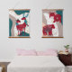 Nordic Animals Deer Couple Bear Gold Hail Boho Art Wandteppich Mit Holzrahmen