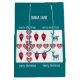 Modernes, künstlerisches Weihnachtspapier mit skandinavischem/nordischem Muster, das rote Herzen (mit Blätter und Blume) in Form eines nordischen Kreuzes (wie auf den Fahnen Dänemarks, Finnlands, Islands, Schwedens, Norwegens usw. zu sehen), rote Baubles (mit Schneeflocken), türkisfarbene Rentiere und den anpassbaren Text "fröhliche Weihnachten" umfasst. Mit einem Namen können Sie personalisieren.