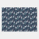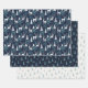 Set von drei wunderschön illustrierten festlichen nordischen Wald Geschenkblätter, die perfekt für Ihren Winterurlaub und Weihnachtsgeschenke. Diese skurrilen Muster sind mit Weihnachtsbäumen, Schneeflocken, goldenen Sternen und Hirschen in dunkelblauen, aquamarinen und weißen Farbtönen gestaltet. Originelle Kunstwerke von Marketa Stengl.