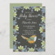 Nordic Folk Art Floral Bird Baby Dusche Grün Einladung