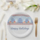 Modernes Design für die Urlaubssaison bietet eine große Grenze von nordischen Bergen und Bäumen auf hellgrauem Hintergrund. Personalisieren Sie mit Ihrem eigenen Urlaub Gruß in modernem Drehbuch Nordic Blue Schriftart. Ideal für Weihnachts-Partys sowohl auf der Zuhause als auch im Büro, Feierabendessen, und natürlich auch für St. Nick.