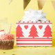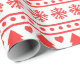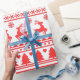 Verwöhnen Sie Ihre Geschenke im gemütlichen Charme eines skandinavisch inspirierten Urlaubs. Dieses festliche Verpackungspapier weist ein volkstümliches Kunstmuster mit fetten Streifen, klassischen Springreitern und bezaubernden Weihnachtsbäumen in einem markanten Rot auf einem sauberen weißen Hintergrund auf. Das Design erinnert an einen traditionellen Strickpullover und ist somit die perfekte Wahl für eine warme und rustikale Ästhetik unter Ihrem Baum. Dieses Papier ist eine zeitlose und trendige Art, Ihren Urlaub mit Freunden und Familie zu teilen.